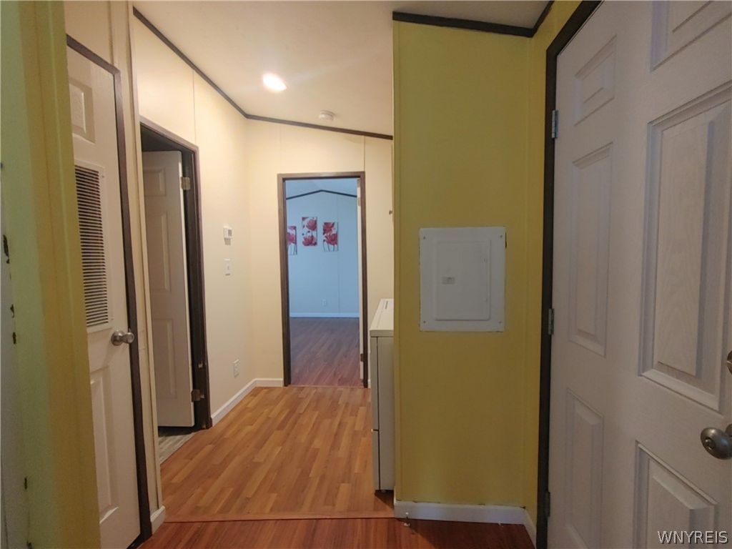 Spectacular 2019 (installed 10/20) Mobile home in Cayuga Village available for purchase. Niagara Wheatfield schools. Low HOA fee compared to most mobile home parks. Many extra features. Beautiful Trex covered porch to enjoy the upcoming summer. 2 Bed, 1 full bath and 1/2 bath en-suite. Central Air Conditioning. Extra Large lot with blacktopped parking area. Vacant lot on east side of mobile home ensures more green space. 1 large shed included. Washer/Dryer included along with all other appliances. New built-in custom microwave. Custom pantry/coffee bar included. HOA is $464. Buyer will need Cayuga Village Mobile Home approval. 2 small dogs allowed. Close to all amenities and Canadian border.