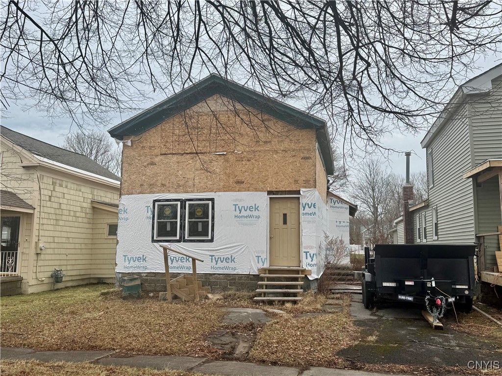 Handyman Special! Incredible opportunity to remodel a property in a wonderful location just a short walk to Lake Ontario. Please proceed with caution during all showings and walk-throughs. Utilities are currently off, and the home is being sold as-is. Significant improvements have already been completed, including new floor joists, a new carrier beam, and new subfloor throughout the first floor. Three exterior walls have new sheathing, two new windows have been installed, and metal for the rear roof is on site in the backyard.